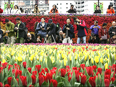 عکاسان از جشنواره گلها در هنگ کنگ عکس می گيرند
