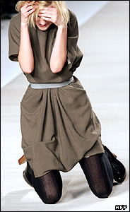 واکنش مانکنی که در نمايش مد پاريس به زمين خورد |