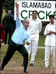 جورج بوش در حال بازی کريکت در اسلام آباد