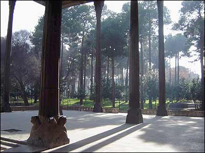 نمايی دور از چهل ستون اصفهان که با تماشای می توان وجه تسميه اين بنا را دريافت.
