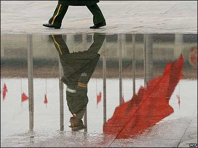 پليسی در ميدان تيانانمن شهر پکن در چين. اين کشور برای برگزاری اجلاس سالانه پارلمان، نيروهای امنيتی گسترده ای را در محل مستقر کرده و صدها تن از کسانی را که ممکن بود در تظاهرات اعتراض آميز شرکت کنند، بازدداشت کرده است.