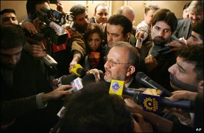 منوچهر متکی، وزير امور خارجه ايران به سئوالات خبرنگاران در رابطه با فعاليت های هسته ای ايران در آينده، پاسخ می دهد.