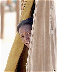 زنی اهل اريتره که از درون چادر "خانه" جديدش در شهر سناوه، شهری در جنوب اين کشور و کنار مرز اتيوپی. در دوران جنگ ملی بين اين دو کشور خيلی ها ملکشان را به دليل مشخص نبودن مرز از دست داده اند.