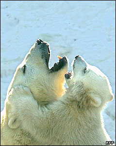 بچه خرس قطب شمالی پنج ماهه با مادرش در باغ وحش شهر مسکو روسيه.