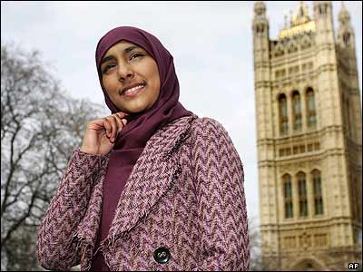 شبینه بیگم هفده ساله که مدرسه اش او را از پوشيدن نوع خاصی از حجاب اسلامی (به صورت چادر بلندی که تنها دستان و صورتش بيرون است) بازداشته است. سال گذشته دادگاه به نفع او رای داد، ولی امروز عالی ترين دادگاه فرجام در بريتانيا، رای قبلی را به نفع مدرسه تغيير داد.