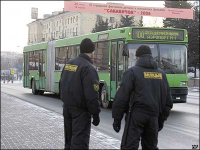 ماموران پلیس بلاروس در ایستگاه اتوبوس ایستاده اند تا از انتقال غذا به مخالفان رييس جمهوری این کشور جلوگیری به عمل آورند. معترضان با ادامه تجمع خود در خيابان های مينسک، پايتخت، به اعتراض عليه نتايج اعلام شده انتخابات اخير رياست جمهوری ادامه می دهند.