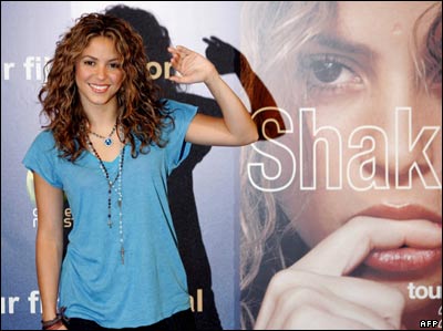 شکيرا، خواننده پاپ کلمبيايی در حال دست تکان دادن برای هوادارانش در مادريد در افتتاحيه تور کنسرت های جديدش به دور دنيا