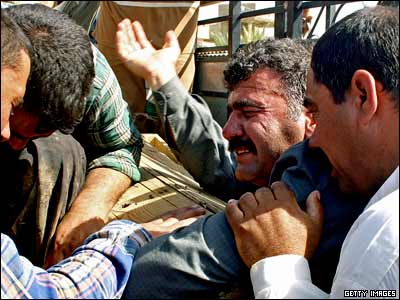 خانواده نوجوان عراقی که امروز در اثر انفجار یک بمب همراه با دوستانش کشته شده است بر تابوت او سوگواری میکنند.