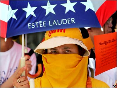 يک معترض تایلندی در تظاهراتی که بر علیه نخست وزیر اين کشور در نزدیکی یک ساختمان دولتی در بانکوک برگزار شده است.