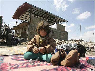 دختر کوچکی جلوی خانه ويران شده اش روی زمين نشسته است. در پی وقوع زمين لرزه هايی در استان لرستان در ايران، آمار کشته و زخمی شدگان افزايش يافته است.