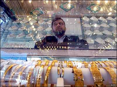 فروشنده يک مغازه جواهر فروشی در شهر کابل دستبندها و گوشواره ها و انگشترهای طلا برای فروش گذاشته است. محمد امين فرهنگ، وزير اقتصاد و کار، امروز گفت تقويت اقتصاد ملی، حمايت از بخش خصوصی، انتقال افغانستان از اقتصاد مصرفی به اقتصاد توليدی، ايجاد زمينه اشتغال برای مردم از اولويت های کاری او در چهار سال آينده خواهد بود. |
