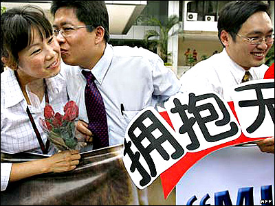 تظاهر کننده گان در کوالالامپور پايتخت مالزی به قانون ممنوعيت بوسيدن در خيابان اعتراض می کنند