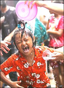 دخترک تايلندی که در مراسم جشن سال نو آن کشور به سر و صورتش آب می پاشند