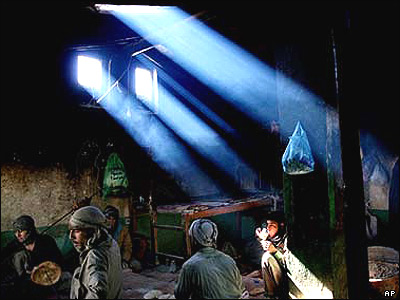 اشعه نور آفتاب در داخل يک نانوايی در کابل