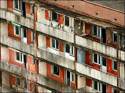 نيروگاه هسته ای، که اين شهر را برای قرن ها غيرقابل سکونت کرده است، در فاصله دو و نيم کيلومتری قرار دارد. عکس ها از: فيل کومز |