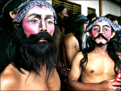 رقصندگان اهل جاوا آماده می شوند تا برای فرو نشاندن آتشفشان مارپی رقص سنتی اجرا کنند.