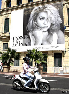 پوستر بزرگ کاترين دونوو در مقابل محل برگزاری جشنواره فيلم کن. پنجاه و نهمين جشنواره فيلم کن از روز هفدهم ماه مه در شهر کن در جنوب فرانسه با نمايش فيلم رمز داوينچی ساخته ران هوارد آغاز می شود و تا روز 28 ماه مه ادامه خواهد يافت.