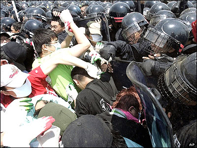 درگپری پليس ضد شورش کره جنوبی با تظاهر کنندگانی که به توسعه پايگاه های نظامی آمريکا در آن کشور اعتراض می کنند. حدود دو هزار نفر از دانشجويان، کارگران و کارمندان ادارات دولتی کره جنوبی در اين تظاهرات شرکت داشتند.