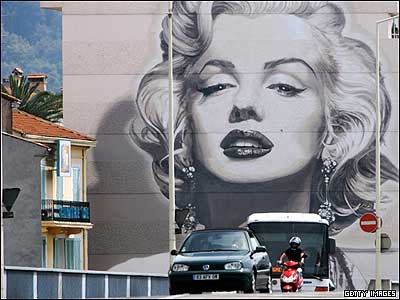 مردم از کنار عکس بزرگ مرلین مونرو، هنرپيشه سينمای هاليوود، در کن در حالی می گذرند که دو روز به آغاز این جشنواره فيلم باقی مانده است. |