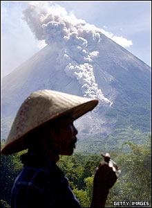 دهقانی در مزرعه اش در کنار قله مراپی در اندونزی در حالی سیگار می کشد که از اين آتشفشان دود بیرون می آيد. هزاران روستايی ساکن اين منطقه به دليل نگرانی از آتشفشانی اين کوه که از خطرناکترين آتشفشان های اندونزی است، گريخته اند.