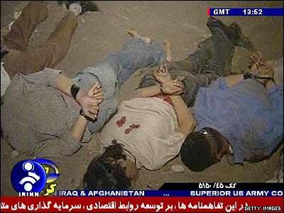 تلویزیون ایران اجساد قربانیانی را که در راه اصلی بم به کرمان به قتل رسیده اند، نشان داد.