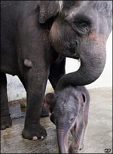 نونی، نوزاد فيلی که چهار روز پيش در در باغ وحشی در جاوای غربی اندونزی به دنيا آمد. در اين منطقه خروج دود از قله "مراپی" هنوز ادامه دارد و به گفته مقامات، احتمال آتشفشانی اين قله تهديدی برای ساکنان منطقه است. |