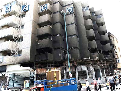 ساختمانی که در جريان تظاهرات اخير در شهر تبريز به آتش کشيده شده است. در پی چاپ کاريکاتوری در هفته نامه "ايران جمعه" که اعتراض شمار زيادی از ترکهای ايران را برانگيخته، طراح کاريکاتور و سردبير ايران جمعه بازداشت شده اند.