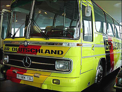 اتوبوس بنزی که در جريان جام جهانی 1974 برای حمل اعضای تيم ملی فوتبال آلمان غربی مورد استفاده قرار گرفت. اين اتوبوس پيشاپيش آغاز مسابقات جام جهانی امسال برای نمايش آماده شد.