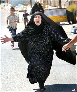 مادرعراقی که سه فرزند خود را در يک بمبگذاری در بغداد از دست داده، شيون کنان به سوی بيمارستان ميدود. اين بمبگذاری که بازارچه ای سرباز را در بغداد هدف قرار داد، حداقل 8 کشته و 31 مجروح بر جای گذاشت.