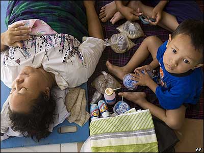 بدترين فاجعه در اندونزی پس از سونامی سال 2004: يک پسر بچه در کنار مادرش در بيمارستانی در شهر يوگياکارتا اندونزی. در جريان زلزله شديدی که روز شنبه در اين ناحيه رخ داد بيش از 4300 تن کشته و هزاران تن مجروح شدند.