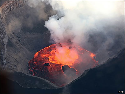 کوه آتشفشانی فعال کارتالا در یکی از جزایر گران کومورس در اقیانوس هند. گفته می شود که ابر تیره و قرمز رنگی از قله این کوه بلند می شود که باعث شده که یک تیم از زمين شناسان فعالیت این آتشفشان را زیر نظر بگیرند.