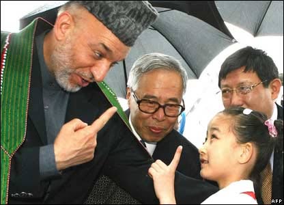 حامد کرزی، رييس جمهور افغانستان که برای شرکت در اجلاس شانگهای به چين سفر کرده، با مردم عادی چين هم ملاقات کرد