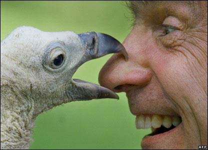 جوجه لاشخوری که بتازگی از تخم بيرون آمده بينی مامور باغ وحش هانوفر را گاز می گيرد....