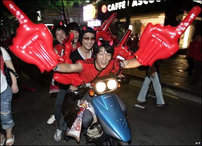 طرفداران فوتبال کره جنوبی در سئول پيروزی تيم ملی اين کشور را بر توگو در مسابقات جام جهانی فوتبال 2006 آلمان، جشن گرفتند.