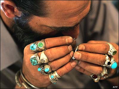 مرد ايرانی جواهر فروش در يکی از خيابان های تهران.