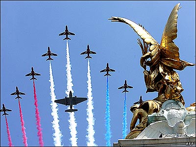 هواپيماهای نيروی هوائی سلطنتی بريتانيا در پروازهای نمايشی بر فراز پايتخت، به مناسبت هشتادمين سالروز تولد ملکه بريتانيا
