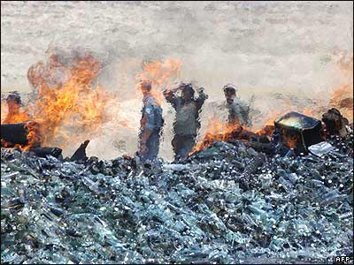 سربازان افغان در حال سوزاندن مقدار زيادی مواد مخدر در کابل. مقامات در کابل 1400 کيلوگرم مواد مخدر را که شامل هروئين، ترياک و حشيش می شود، ضبط کرده اند.