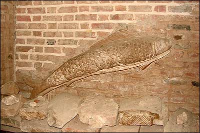 نقش برجسته ماهی که بر روی ديوار آتشکده قرار داشته است.