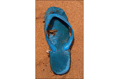 نينا ناتايا: "خرچنگ کوچکی که به سايه دمپايی کنار ساحل کاسگوندا، سريلانکا پناه برده است."