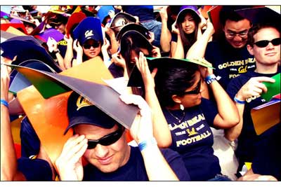 جوئن کيم: "طرفداران فوتبال در کاليفرنيا پلاکاردهای رنگی مخصوص بازی را هنگام بارش تگرگ بالای سر نگه داشته اند."