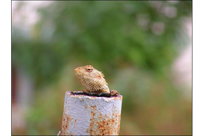 مايان سوامی: "سوسمار کوچکی که لوله زنگ زده آب را محل پناه و زندگی خود انتخاب کرده است." |
