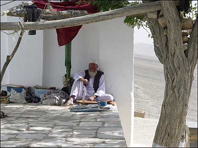اين مرد سالهاست که در زيارتگاه چشمه شفا در غزنی خدمت می کند.