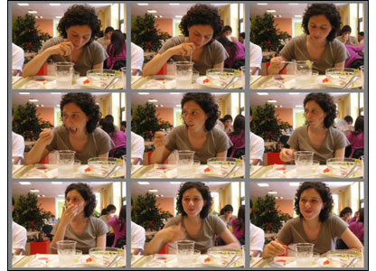 سيمون وات: اين عکسها را از دوستم در حال غذا خوردن گرفتم. اول متوجه نبود که از او عکس می گيرم و فکر می کنم حالت قيافه اش خيلی جالب بود. |