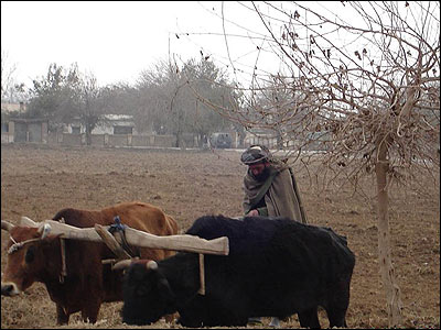 در حال شخم زدن.