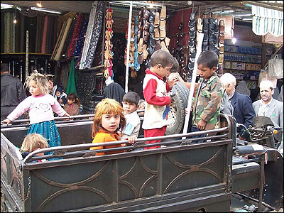 خانواده ای که از اطراف شهر برای خرید به دمشق آمده بودند