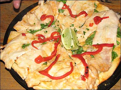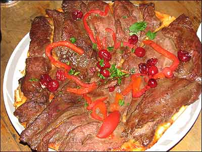 اين يکی پيتزای ايميو نيست (هر چند آن را هم خورديم!)؛ اين پيتزای کروکوديل است که گوشتش طعم مرغ دارد. الحق که هيچ جانوری از دست انسان در امان نیست. |