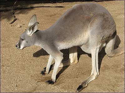 يک کانگوروی مادر که فرزندش در کيسه جنينی تکان می خورد. باغ وحش تارونگا از جاذبه های اصلی توريستی سيدنی به شمار می رود.