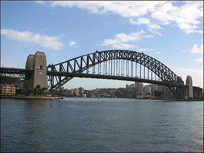 پل بندر سيدنی که مرکز شهر را به ساحل شمالی بندر متصل می کند؛ اين پل يکی از جاذبه های اصلی توريستی سيدنی به شمار می رود و ۷۵ سال قدمت دارد.