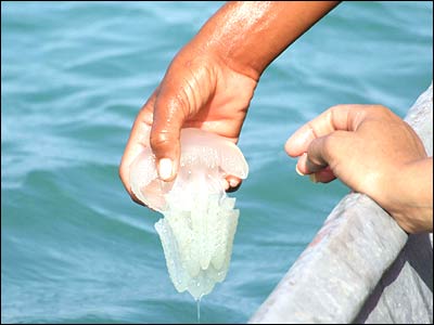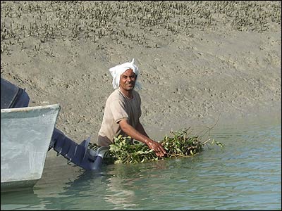 فروش صدف و روغن کوسه در کنار جنگل حرا
