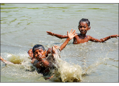 راجیب سینگها: عکس از آب تنی بچه ها در دهکده ای در هند